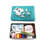 ブリキ缶に入ったミニサイズのソーイングセット。